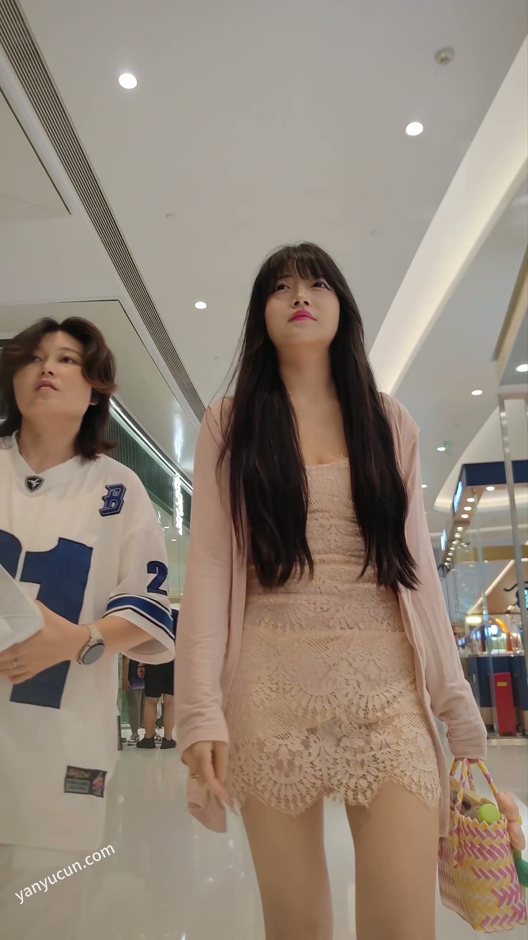 XM399粉色包臀裙小姐姐和闺蜜逛街,白色内内 ...