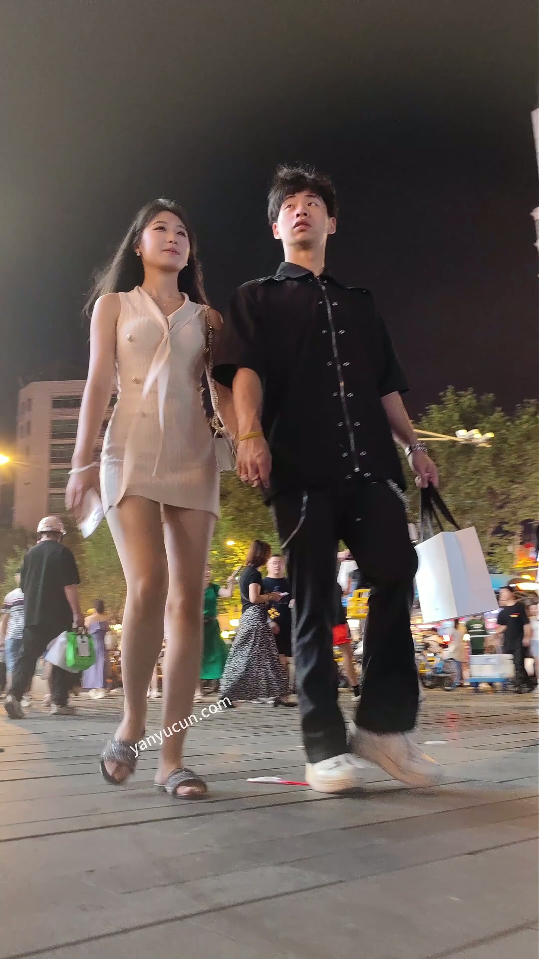 XM438白色包臀裙美女和男朋友逛街,白色内内 ...