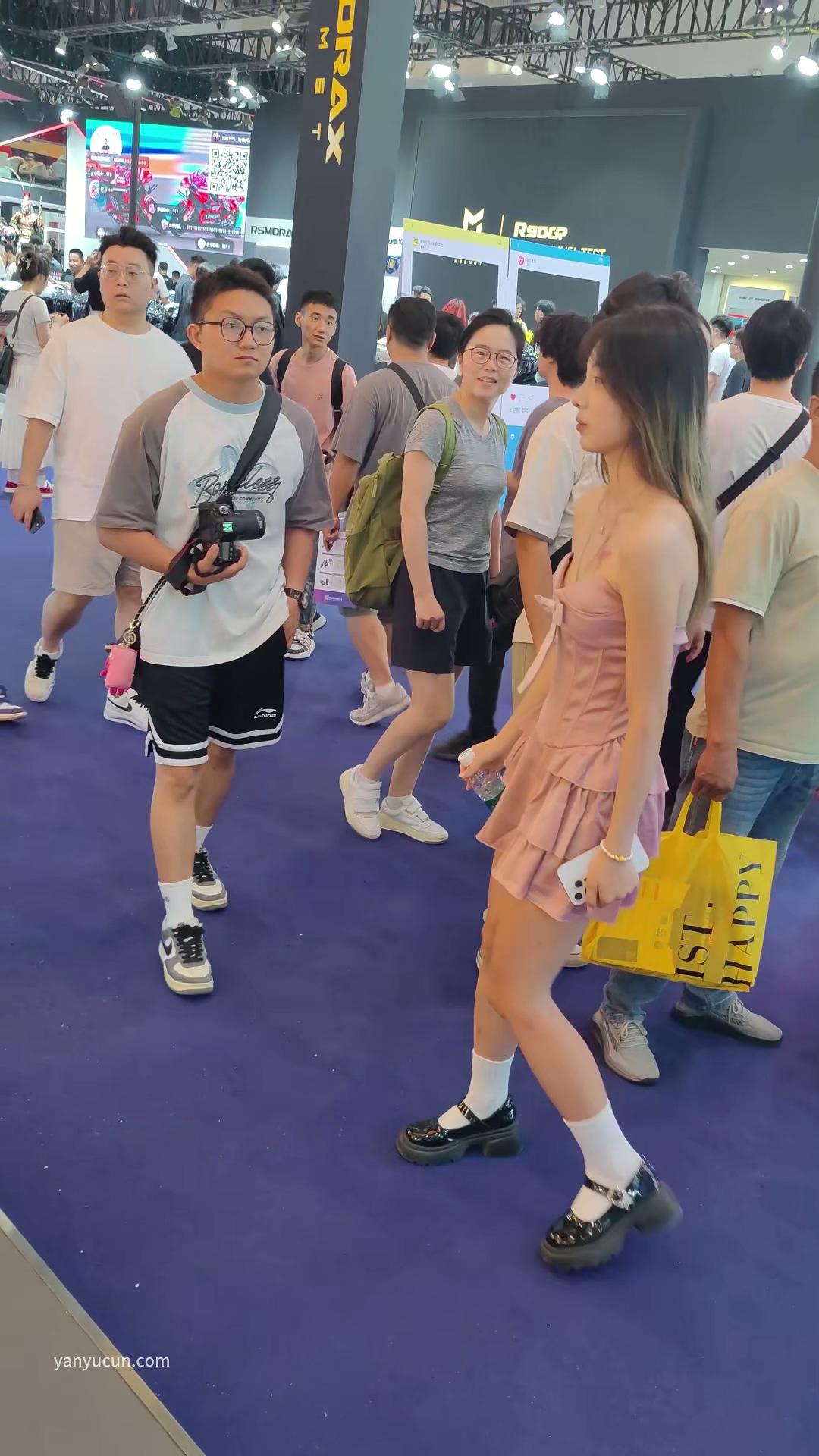 XM305粉色连衣裙小姐姐逛车展,粉色内露毛 ...