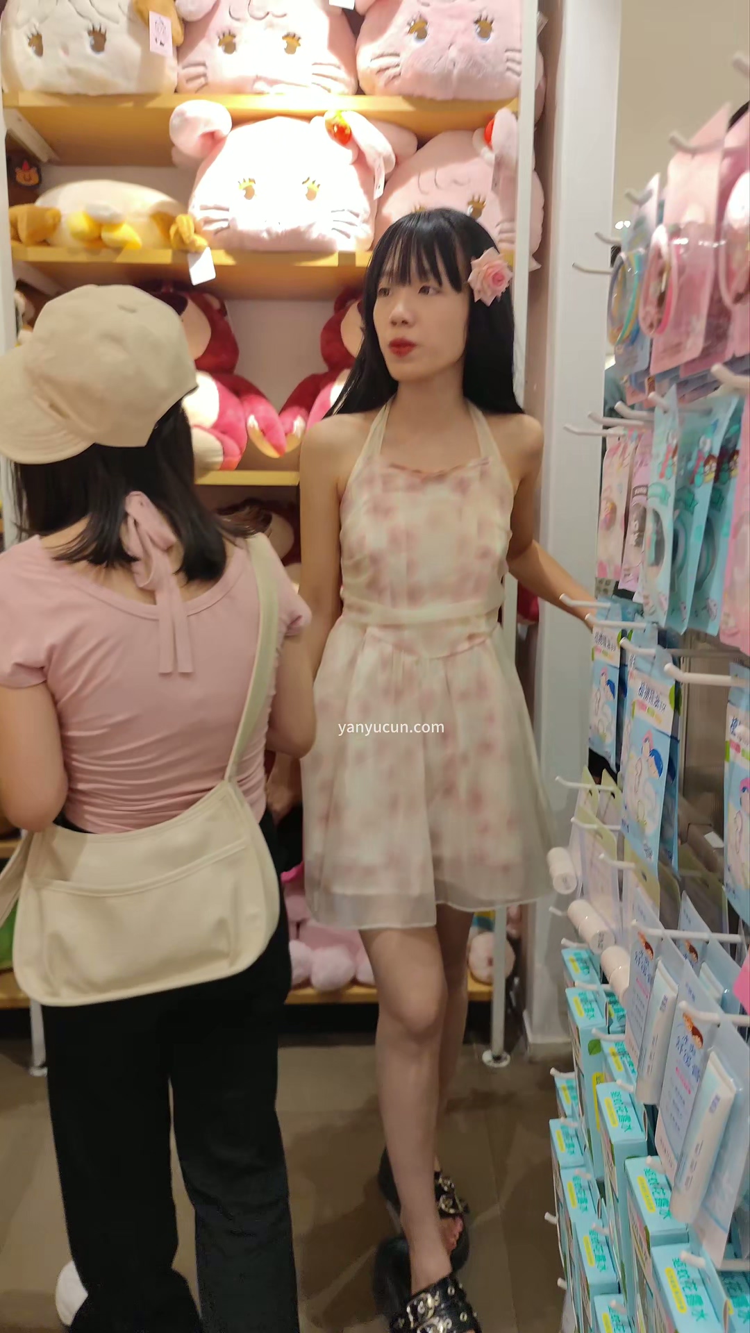 XM310粉色蕾丝连衣裙小姐姐和男朋友出来旅游,白色内内