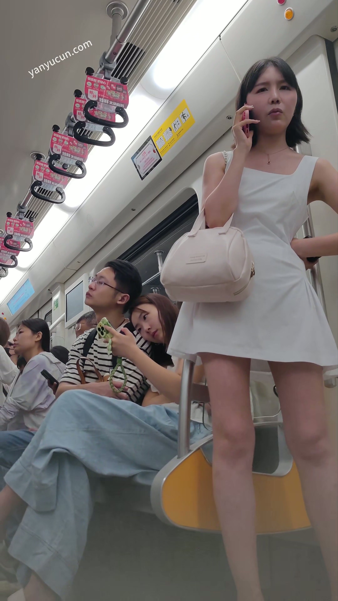XM358白色连衣裙短发美女,前后抄底灰色内内