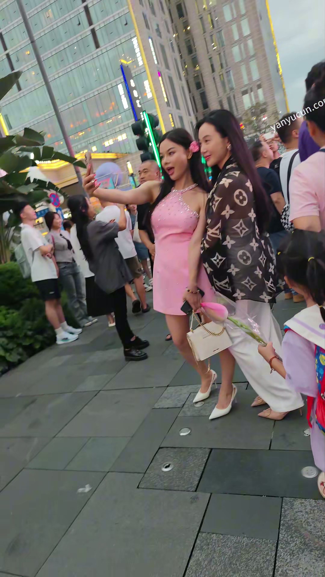 XM362粉色连衣裙美女和闺蜜打卡拍照,红色内内带翅膀