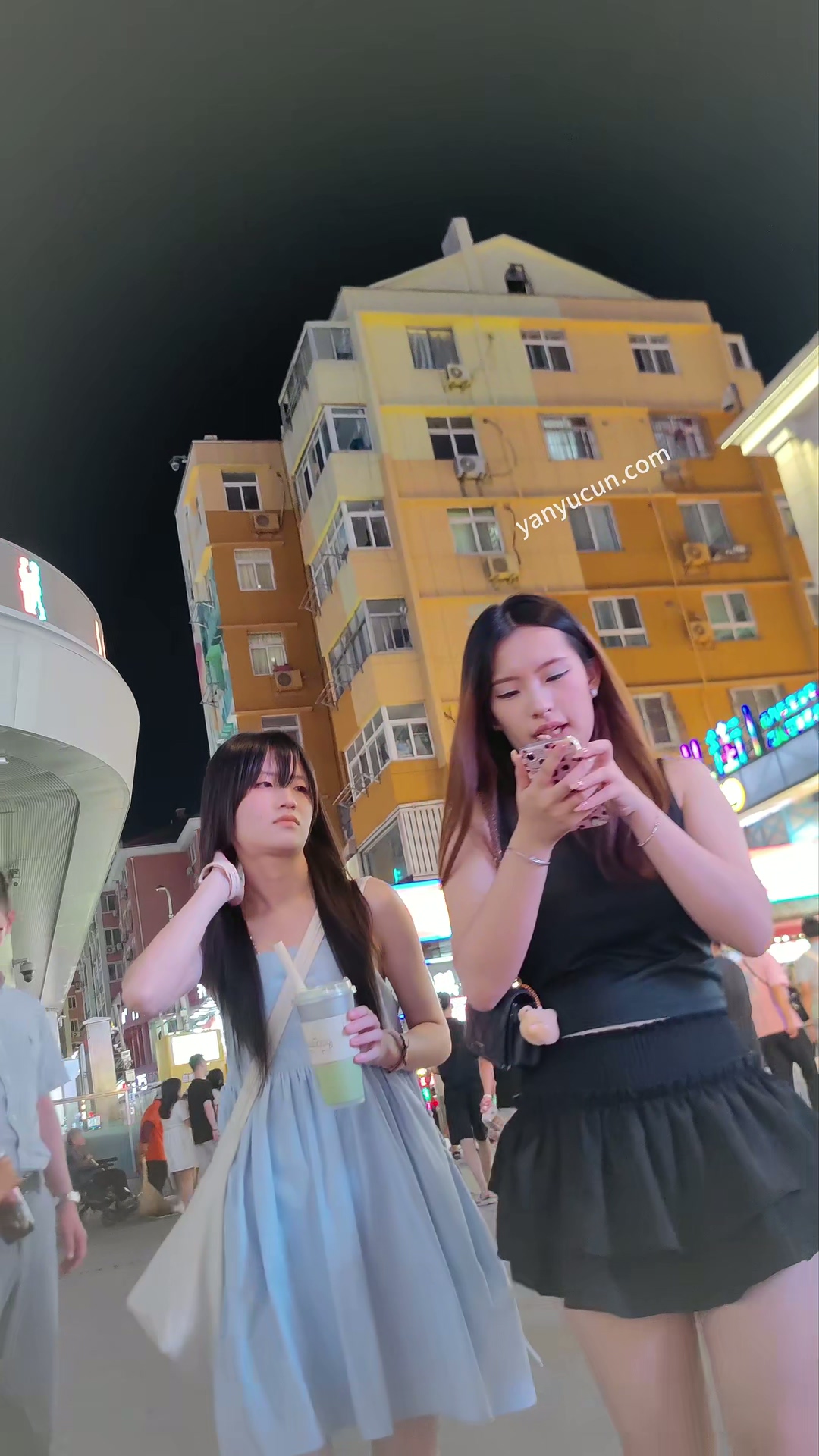 XM366蓝色连衣裙清纯小美女和朋友们出来玩,一个白色窄 ...